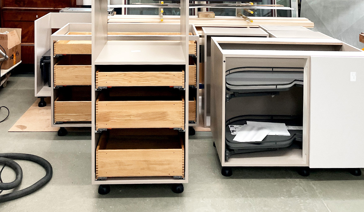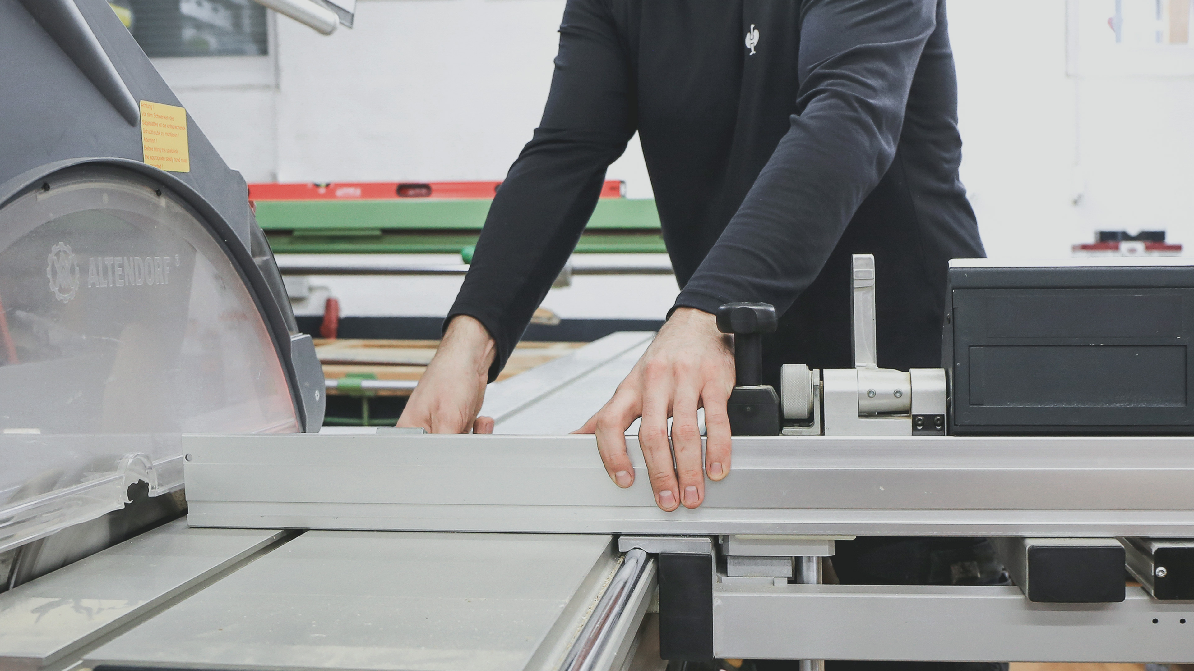 Jetzt startet die eigentliche Fertigung Ihres Projekts. Bis Ihr Projekt die Werkstatt verlässt, muss viel bewegt werden. Schneiden, fräsen, bekanten, schleifen, Oberflächen veredeln und vieles mehr. Jedes Bauteil wird individuell gefertigt und mit viel Liebe zum Detail bearbeitet bis zum kleinsten Bohrloch. Einige Elemente werden bereits in der Werkstatt vormontiert, was die Effizienz bei der späteren Montage erhöht.